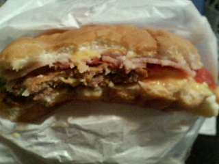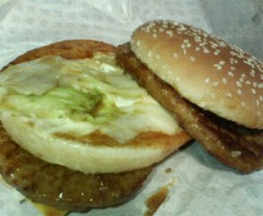 まず、崩壊した上のバンズで上のパテ・レタスを挟んで1食目。