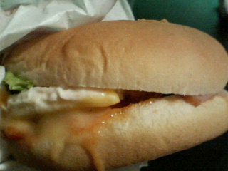 次いで、残りのバンズ・パテ・レタス・チーズ・下のバンズで2食目。