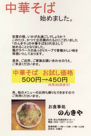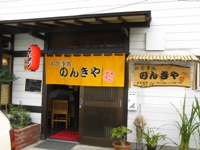 手書きみたいな文字で「のんきや」って黒い太字の看板?