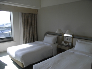 何故だかツインベッド。 枕が4つもあって、どれを使うか迷いました。