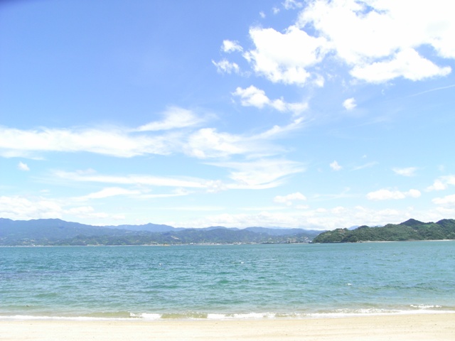 海は空の色を反射してるのかな (´∀`) ん?太陽の光の反射か。