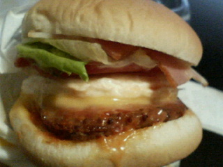 次いで、残りのバンズ・パテ・レタス・チーズ・下のバンズで2食目。