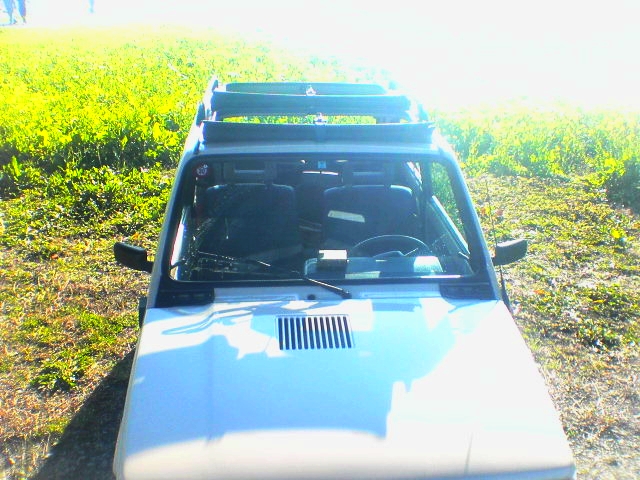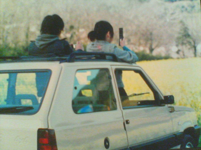 パンダの屋根から身体を出して、菜の花を撮影してたところ。